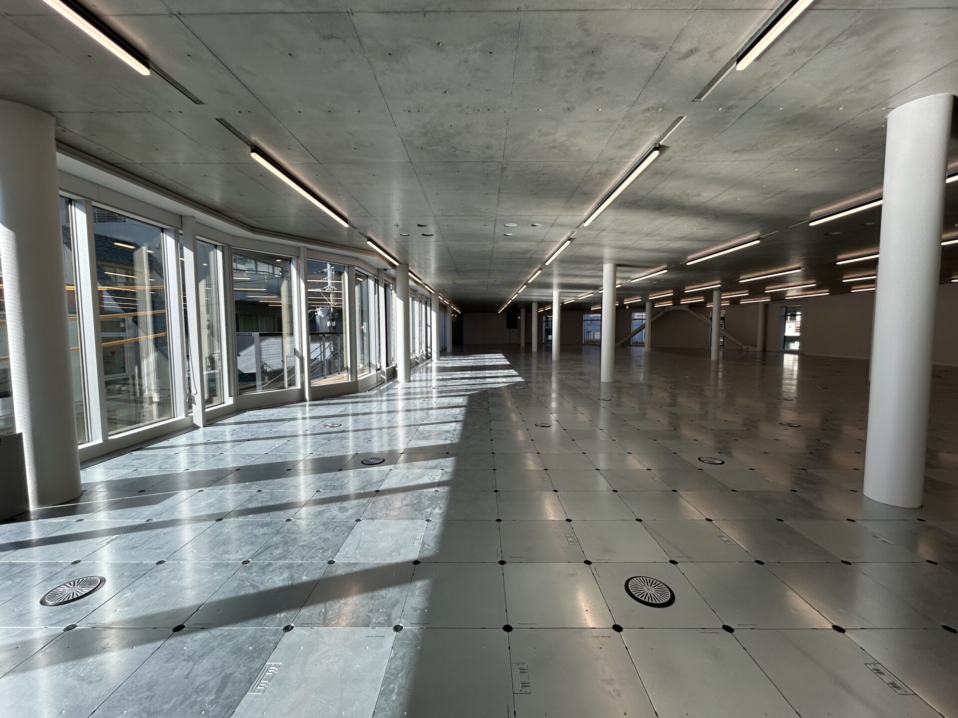 天井に並ぶLEDライトが床に反射していて、なんだか異空間に来たみたいな気分になりました。