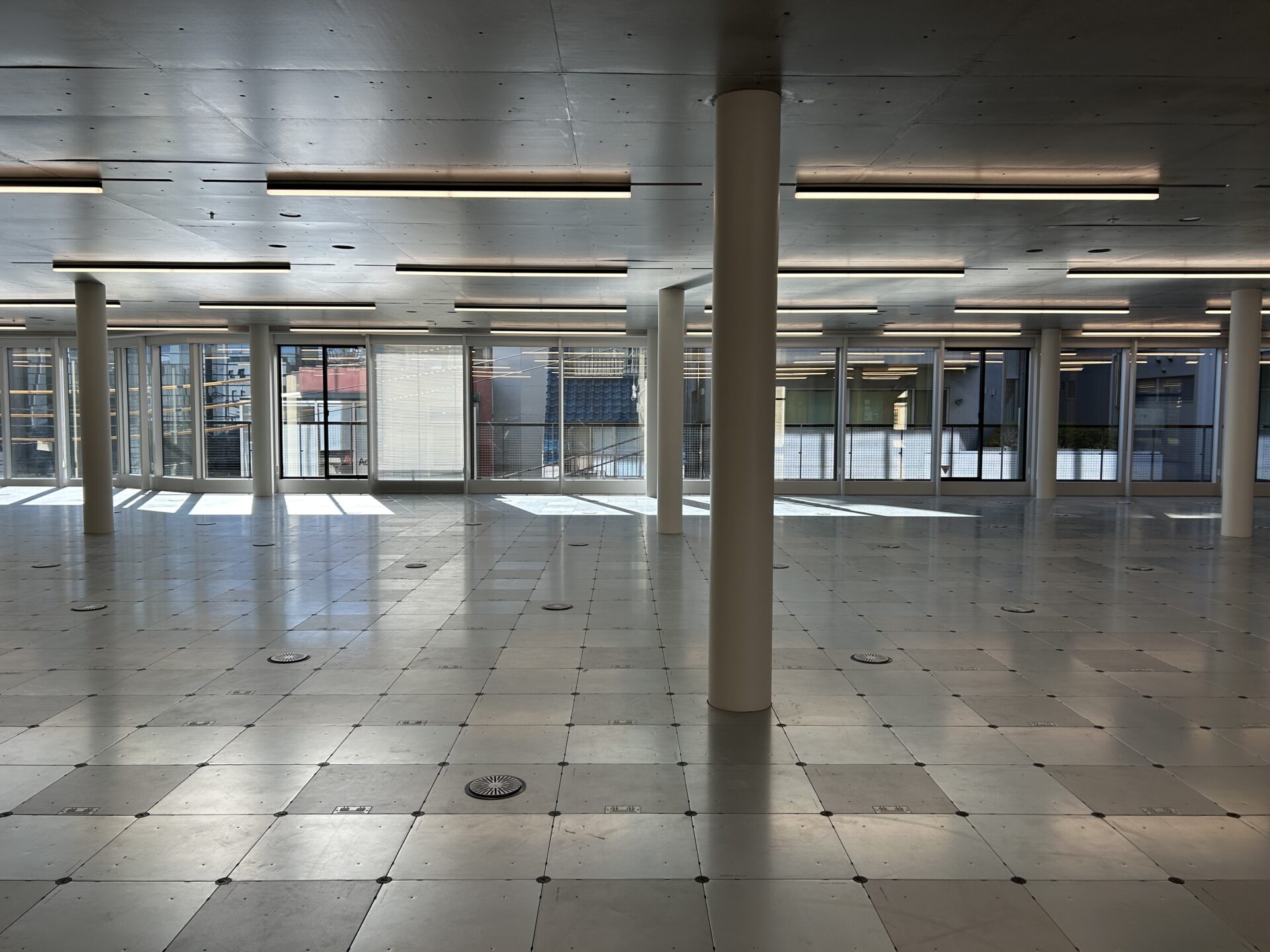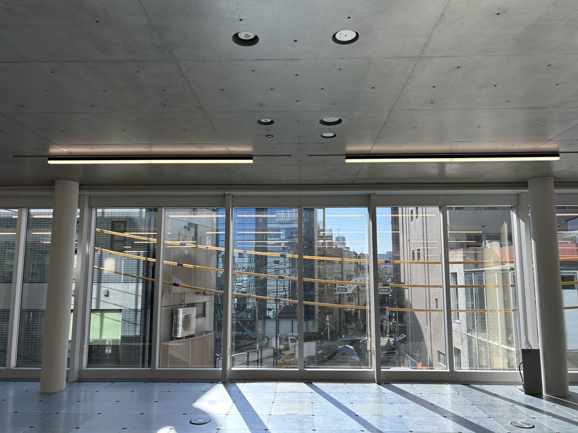照明と一緒に白いポールも縦に並んでいたり、陽の光も全方向から入ってくるのでより広く見えたのかも。