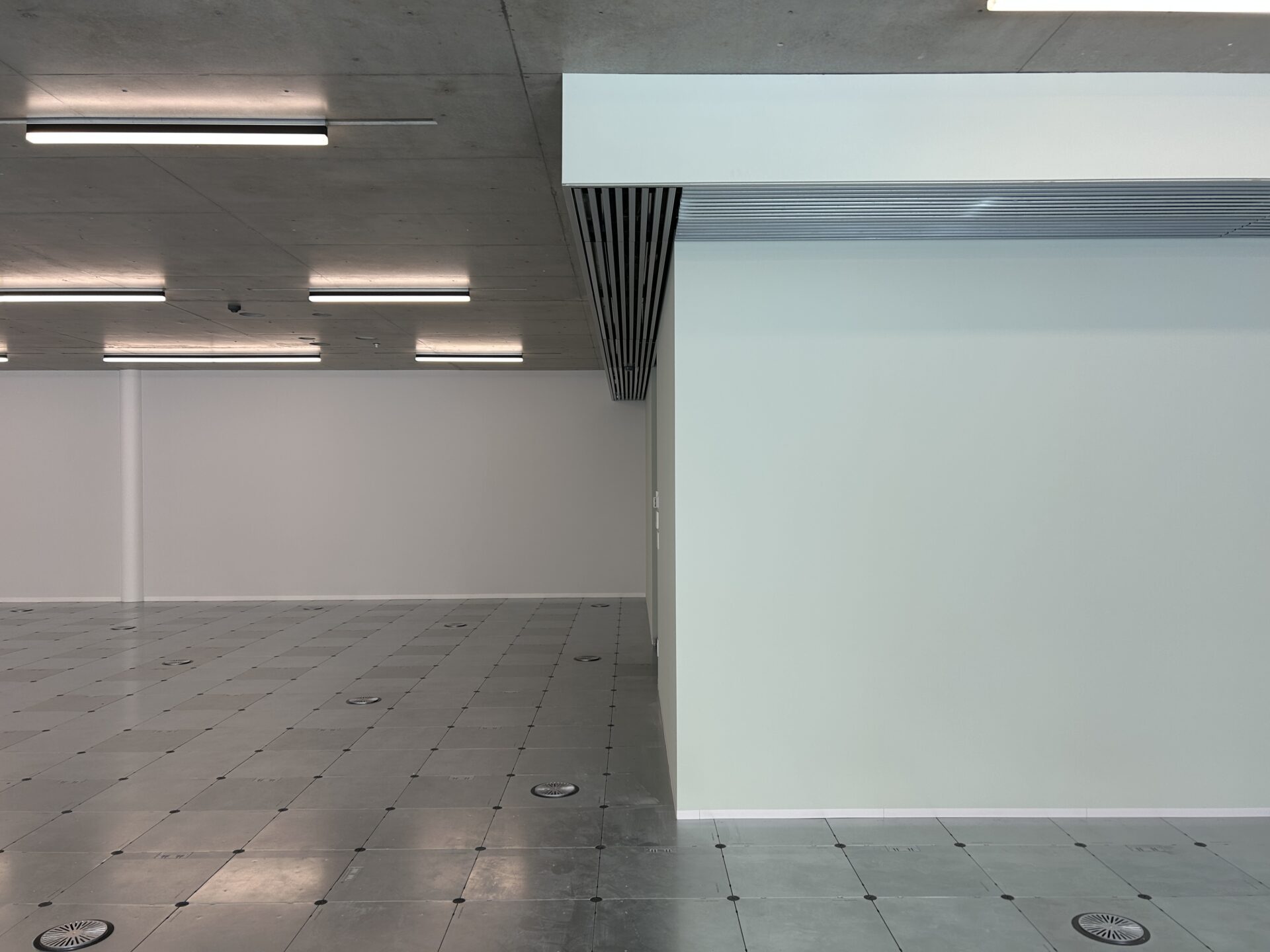 先程も書いてしまったのですが、デザイン性の高い空間づくりのため、床吹出し空調が使用されています。