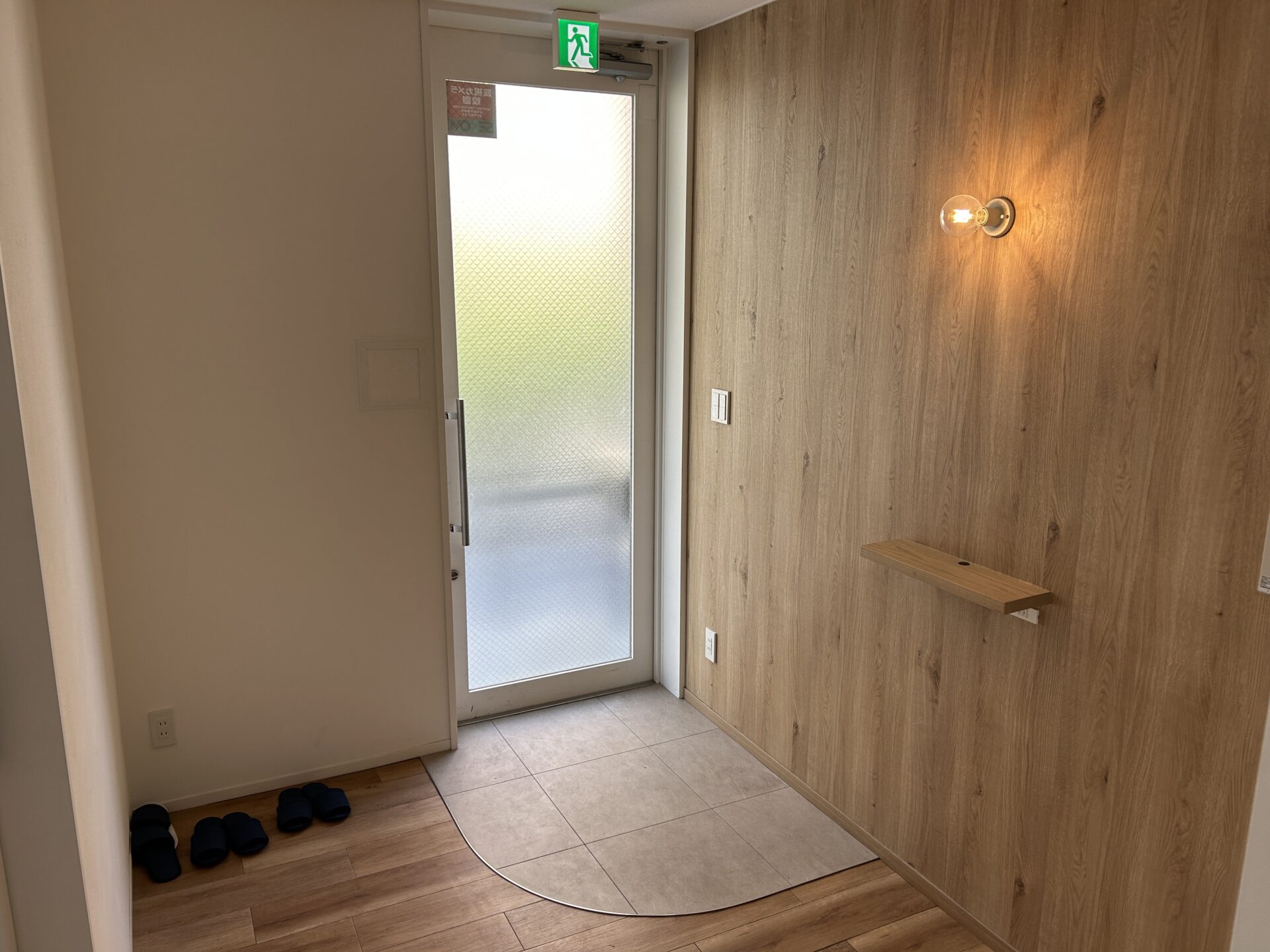 1Fは木目と白で統一された空間。入口扉は自動ドアです。なんだか自動ドアなだけで、高級感というか