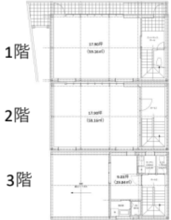 1F2Fを店舗として使用するなら、3Fは休憩室みたいに使用できそうですね。