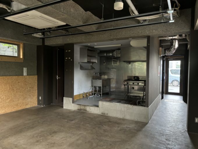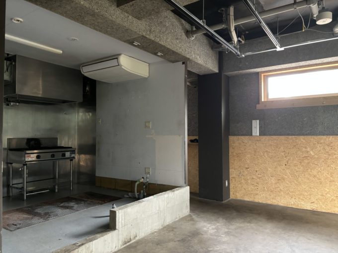なんとも面白い空間でしたが、引き渡し状態は希望に合わせて相談できます。飲食店のほか、この洞窟感、アトリエや工房なんかにも合いそうですし、キッチン機能を生かしてテストキッチン兼事務所なども良さそう。