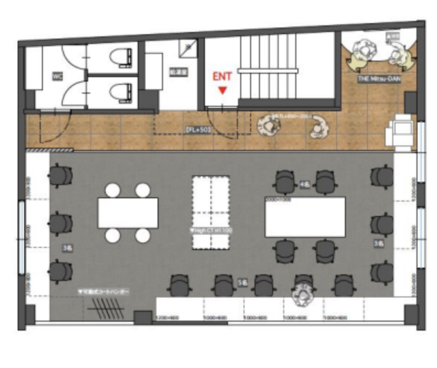 一階、屋上部分はレンタルスペースとなっており、社内イベントなどにも便利だ。一階の会議室は無料で利用できる。(要予約)15名の家具、内装付きのセットアップ仕様となっている上、敷金・礼金なしと事業用物件では珍しい条件だ。家具の搬入やレイアウトなど、引っ越しが煩わしい方にぴったりなオフィスだ。