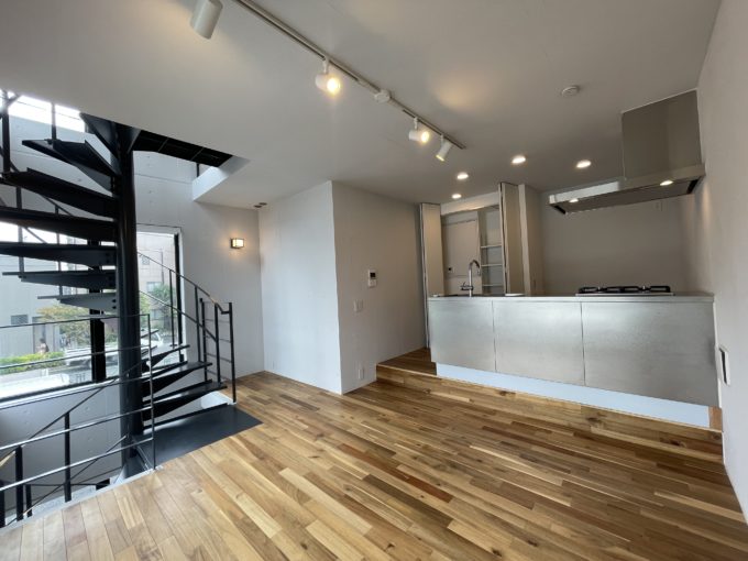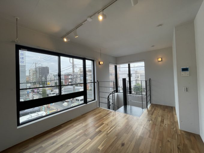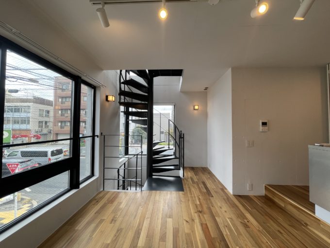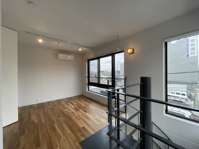 こちら、1階がガレージとなっており、駐車可能です。このスペースがあるだけで一気に自分のオフィス感が出るように思います。