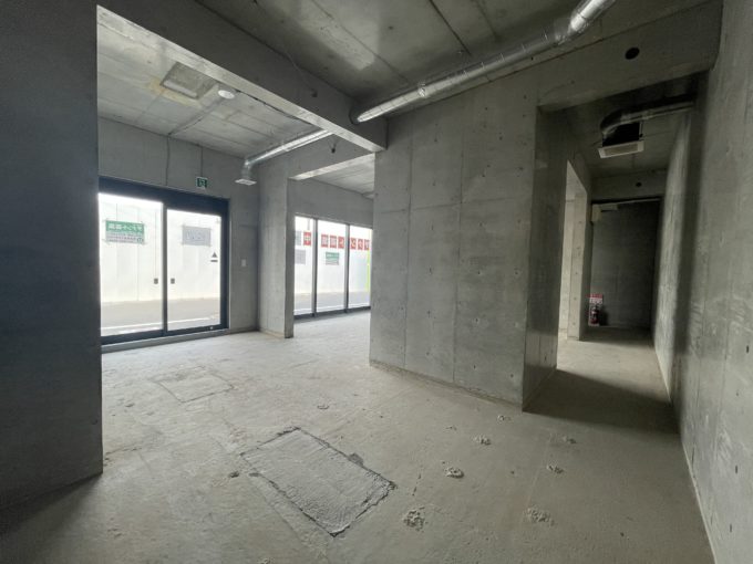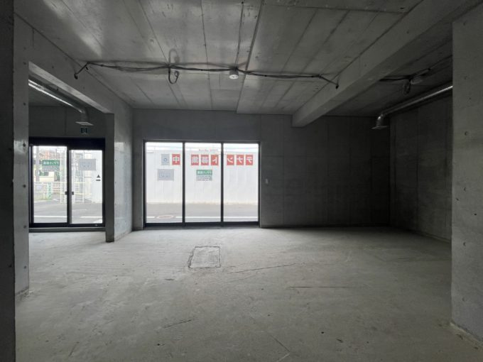 南口に出て線路沿いを少し歩いたところに位置するこちら。地下一階と一階部分は店舗仕様だが、2階からは住居となっている。室内は完全スケルトン状態。周辺にはお店が少ないため、飲食、薬局やサロンが入居すると非常に喜ばれそうだ。