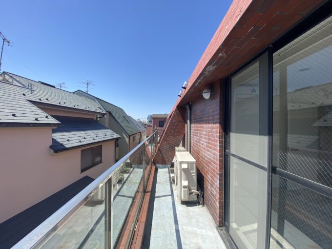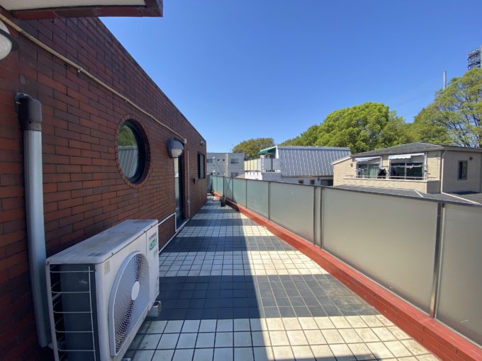 門扉を開けば広々テラス、そしてその先には駒沢公園が望めました。ちょうど硬式野球をやられていて、賑やかな掛け声が聞こえてきました。