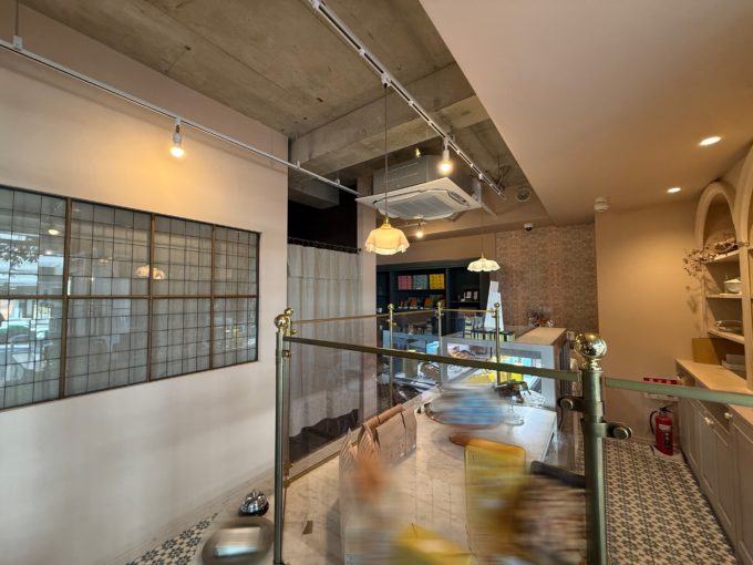 今回の箱のちょうど真ん中部分は、以前はイートインスペースとして使わていたようで、こちらもアンティークなカウンターが目を惹きます。