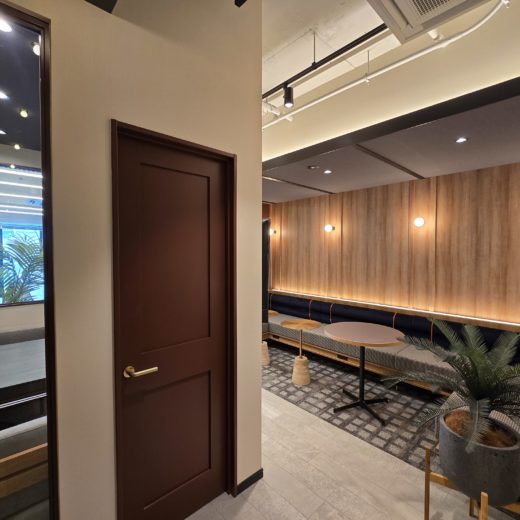 エントランスを抜けていくと、4名用の個室会議室とゆったりしたラウンジスペース。