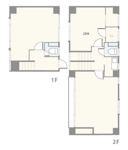千代田区立麹町小学校の前に佇むビルの一室。ビルの一階には可愛らしいカフェ『イイジカン』が入居中。今回募集するのは1-2Fのメゾネット区画。1階(写真5枚目)には5畳ほどの部屋があり、2階(写真1-3枚目)に上がった先にシンクとトイレ、両側に2部屋設けられている。窓から見える緑と、外から聞こえてくる子どもたちの元気な声は、居るだけで心を和ませてくれる。通りに面している2階のため視認性は良好。ドアや照明の可愛いらしさが特徴的で、全体的に暖かい雰囲気の物件である。個室が二部屋あり、事務所はもちろんのこと、スタジオや物販店など、幅広い用途で使用できる。こんな場所で仕事できたら、ストレスフリーに伸び伸び働けそうですね。