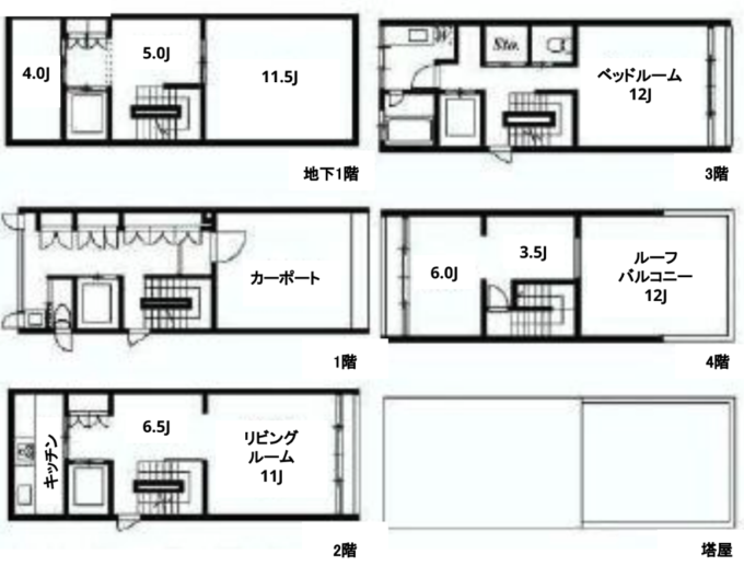 4階部分は部屋の半分がルーフバルコニーとなっている。