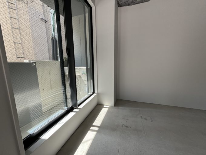 新築スケルトンのいいところは、我々が伝えたい、「そのままの空間を活かすこと」のリアルさが増すことだと思います。綺麗なトイレ、新品なビルトインエアコン。これらがあるだけで、残りの無機質さをどう活かそうかな?などなど、内装をがっつり考えられそうですよね。