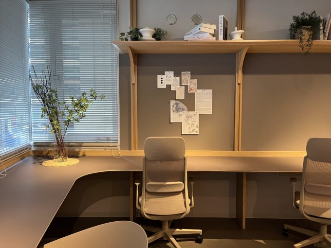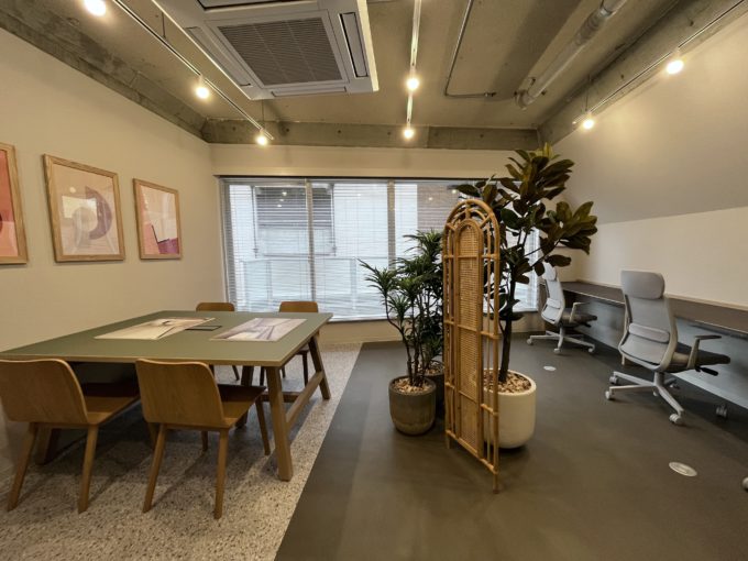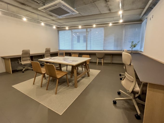 こちらの物件、2023年12月にリノベーション済み。オフィスを“ワクワクするはたらく場”として考えデザインされているらしく、アースカラーのインテリアで居心地が良く、細部までこだわり抜かれたデザインになっています。