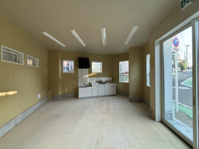 道ゆく人が覗いては待ち侘びる区画。カフェとか間違いなしですね。隣のビルではたい焼きが売られていて、たい焼きって信じられないほど喉が乾くので、1階の窓からテイクアウトでラテを受け取れるのとかもいいな。写真館とかもいいなぁ。妄想が膨らみますね。