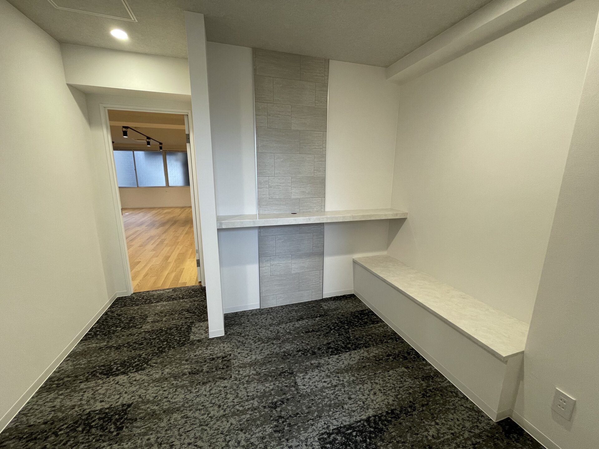 こちらはメインルームとミーティングルームに繋がっています。ここにはベンチまで備え付け。