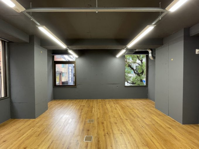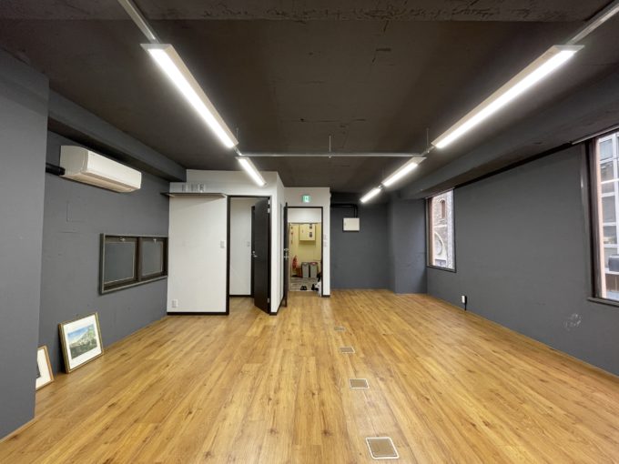 1973年築の古いビルでありながら、お部屋はしっとりとしたグレーでまとめられていて素敵。なんといっても駅近の立地でこの賃料というのが魅力的だ。オフィス利用なら2〜3人のオフィススペースとして、または個人サロンとして利用するのにぴったり。