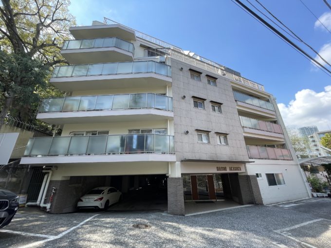赤坂と六本木の間にある『本氷川坂』の途中に聳え立つこちら。東京三大縁結び神社の一つとも言われている氷川神社のすぐ近く。周辺は赤坂の駅前の喧騒を他所に、都会のオアシスをも感じられる。今回紹介するのはオフィスと住居が入り混じったマンション物件だ。