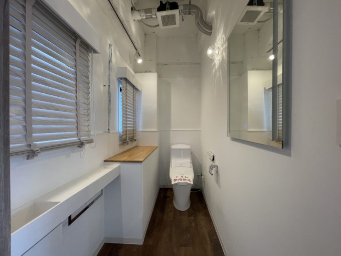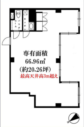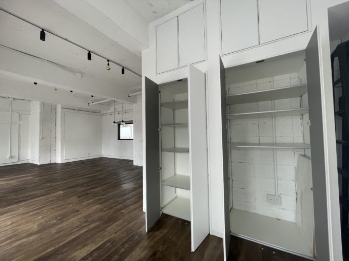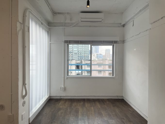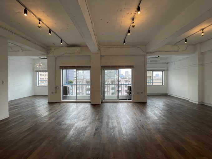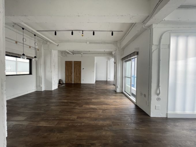 2020年に室内をフルリーのベーションしたこちら。エントランスや共用部もおしゃれにリノベされていて築50年ほどと思えないほど綺麗だ。扉を開けると3メートル越えの天高と窓が多くあり非常に開放感がある。ライティングレールも多く設置されており様々なパターンの照明計画が考えられそうだ。