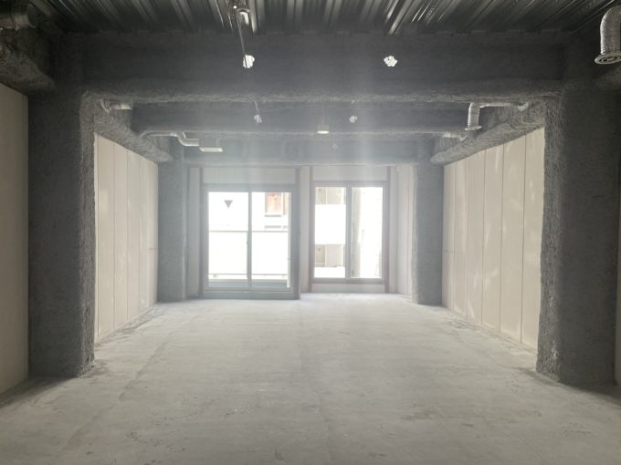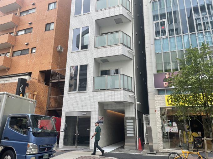 2022年7月に竣工した細長いこちらのビル。周辺には多くの店舗ビルが立ち並ぶ。エントランス、エレベーター横には看板の掲示が可能。募集区画は2階、4階-6階。2階は視認性が高く、4階以上は日差しが入り明るい印象だ。ワンフロアワンテナントで軽飲食、物販、スタジオなど幅広く対応可能できる。