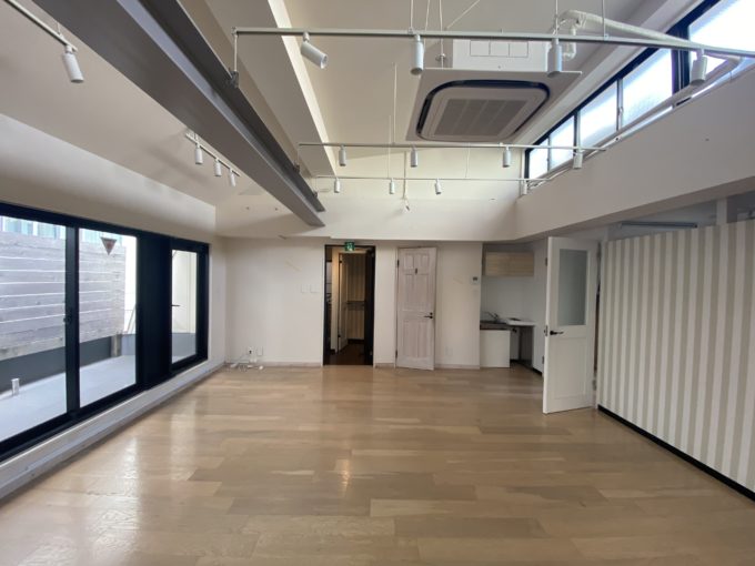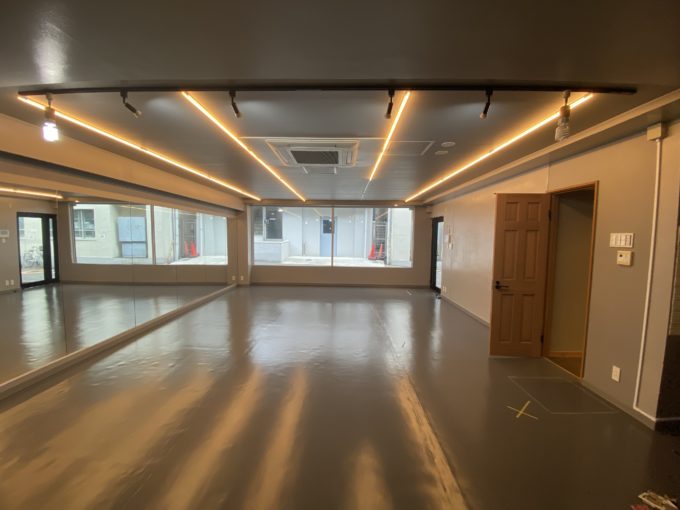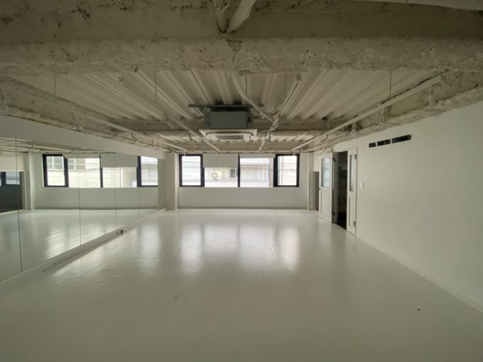 元ダンススタジオだったそうで、1-2Fは壁一面に鏡が貼ってあります。