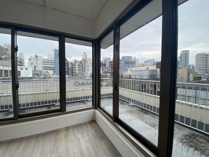 その理由はなんと言っても2面採光の広々なベランダ。全て掃き出し窓になっている分、その開放感に磨きをかけてくれています。おかげで東向きではありますが、明るさは雨でも申し分なかったです。