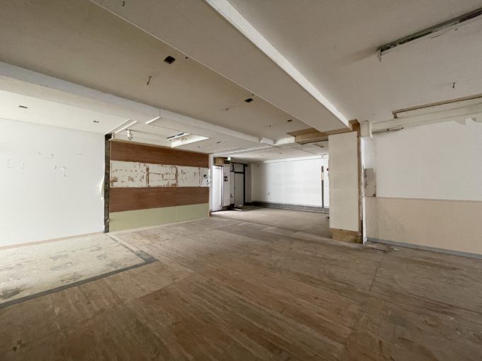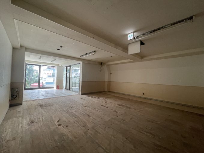 一階部分にはペットのトリミングサロンが入居中。そのお隣のビルの一階にもペット病院がありペットが多い街の様だ。今回紹介する物件は2階部分。以前は学童として利用されていたそうだ。大きな窓への看板設置もでき、ショップや飲食店の場合、窓からどのように魅せるかが重要となってきそうだ。