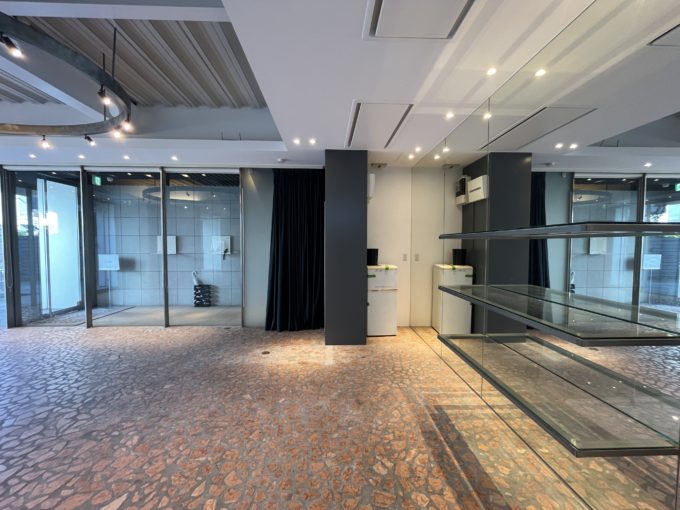 正面には鏡が一面に貼ってあるので、実際よりも奥行きがあるように目が錯覚します。