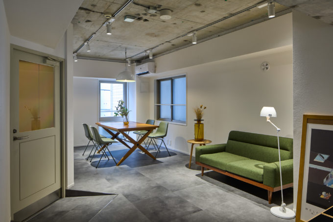 現在2階と7階の2フロアが募集中。2階は家具付きセットアップオフィスになっており、南西向きの窓側に座席が並んでいます。人と向かい合う「島」じゃない壁を向いた集中型レイアウト。さらに会議室や応接室にピッタリな嬉しい個室つき。5名前後で使用するサイズ感です。