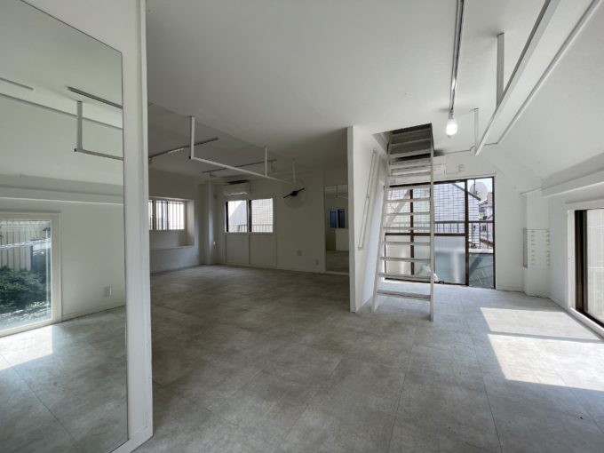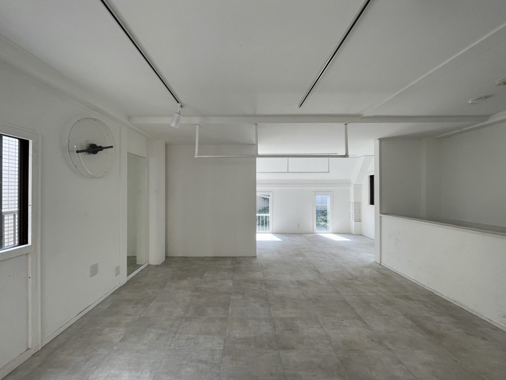 南青山七丁目交差点至近。六本木通りから一本入った住宅街の中に現れるこちら。募集区画は2-3F加えて、ロフトと屋上もついてくる。2F窓側は和風の客間がある。前テナントはアパレルショップだが、なかなか変わっていて面白い物件だ。階段で3階へ上がると、2階からはイメージできないほどの洗練された白貴重の空間が広がっている。鏡に映る緑が、室内を広く見せ、都会のオアシスを感じさせる。天高はそこまでないが、隠れ家店舗やギャラリーには申し分ない内装に仕上がっている。屋根裏に続く梯子を上ると、ちょっとしたロフトスペースとさらには屋上が広がっている。前テナントさんの抜群なセンスをあなたのアイデアでさらに素敵に活かして欲しい。