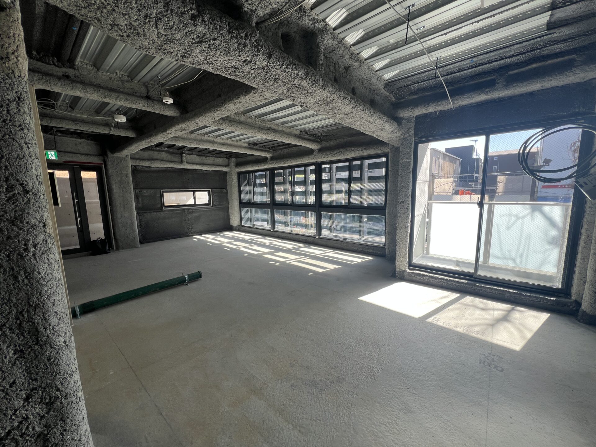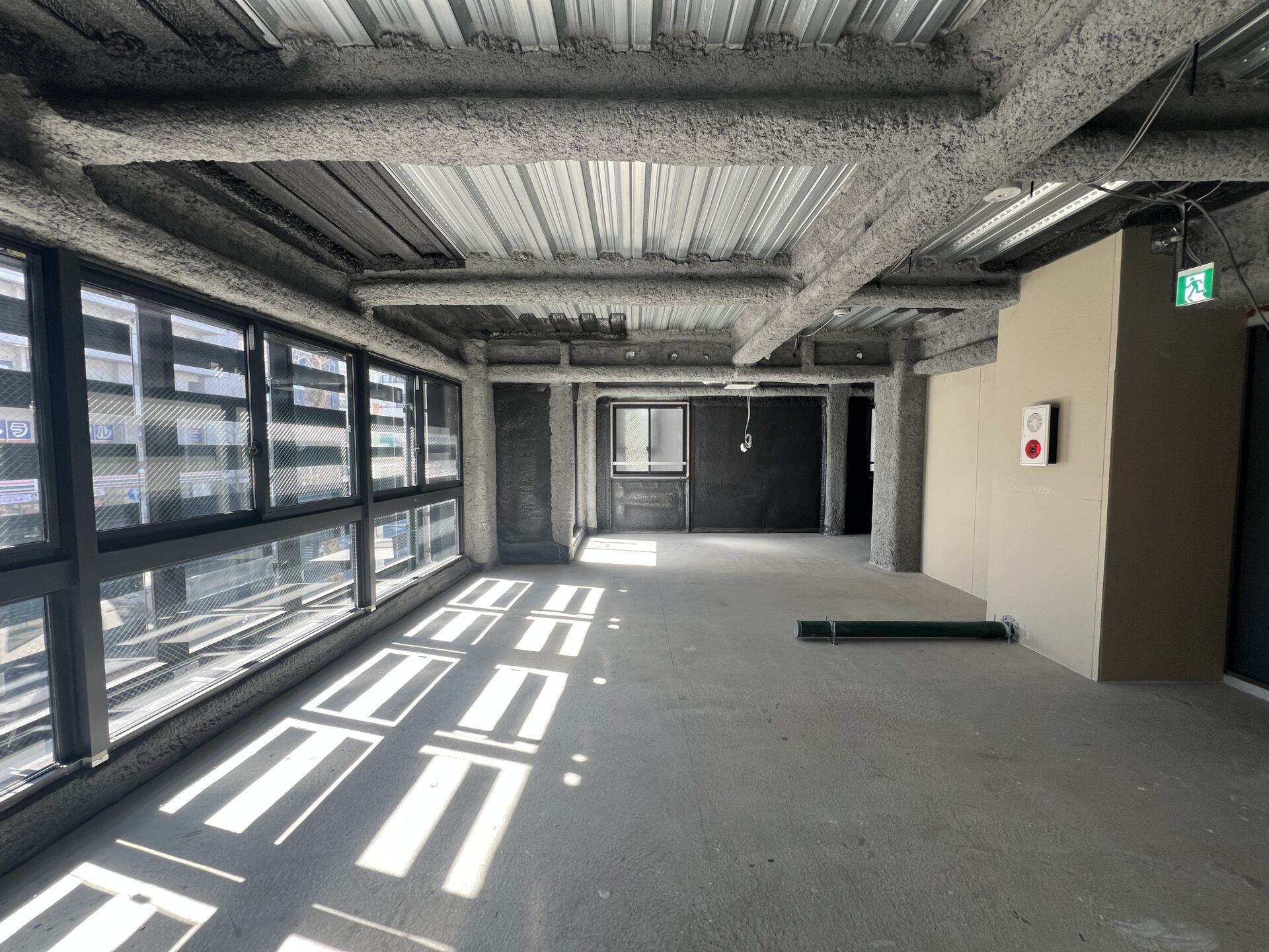 室内は天井高2.7mのスケルトン空間。余計な造作が一切ない分、イメージは自由自在です。飲食、美容、物販。あるいはゼロから作り込むオフィス。南東向きの採光面で優しい光が入ってきます。