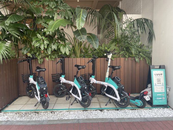 旧ホテル時代の外観、エントランス、客室といった形が生かされ、街の一角がリゾートムードになっています。