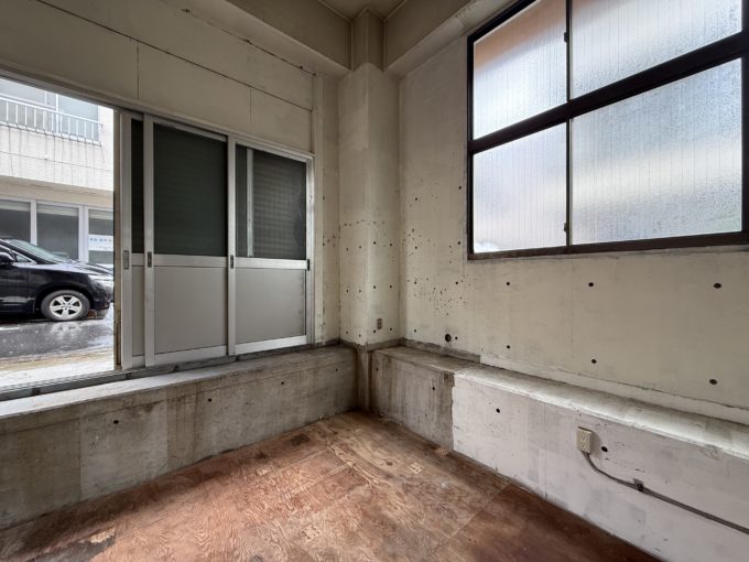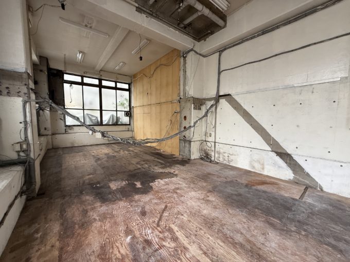 床は板が貼ってあり、その下に根太があることと水回りがない点で内装工事が必要です。