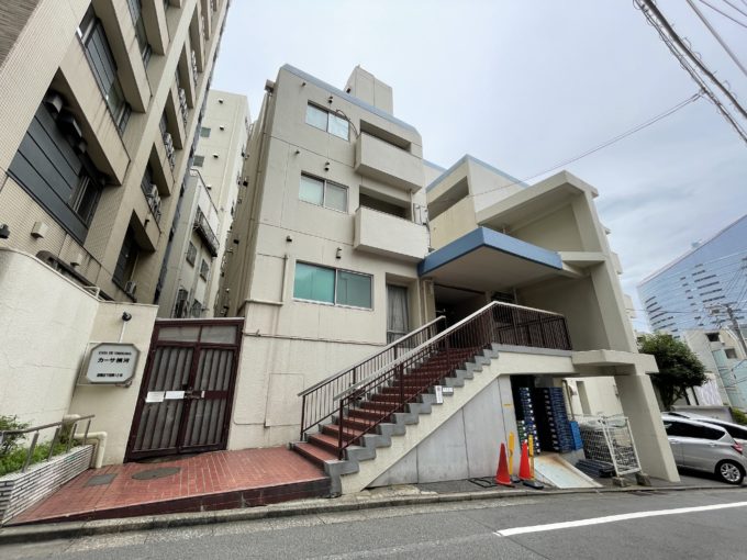 目黒駅から徒歩1分、JR西口駅を出て目黒川のほうへ権之助坂を下っていき、途中左手に曲がったゆるやかな坂の途中に物件がある。坂の途中と駅前合わせ銀行が4行と金融機関が充実している。物件がある通りの一本駅寄りの通りには時間貸し駐車場がある。また、駅からは中目黒方面、祐天寺・三軒茶屋方面のバスが出ており、三茶方面は一時間に4〜6本と本数も多い。