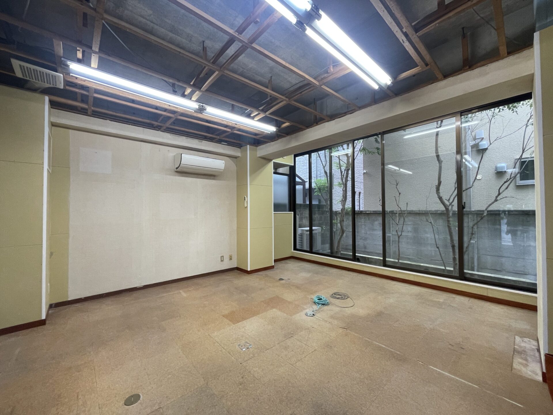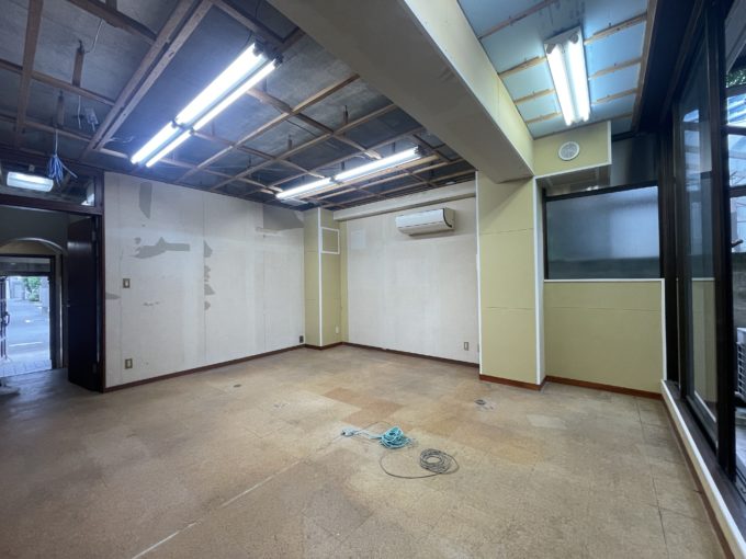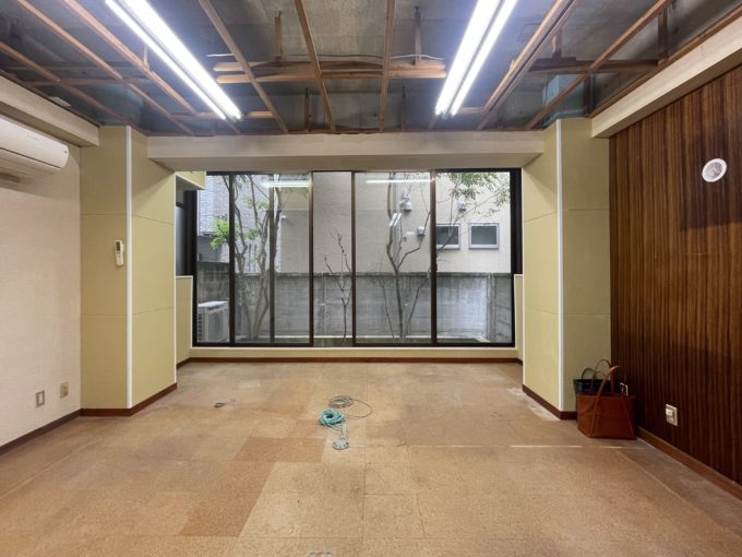 青山一丁目と外苑前の間。閑静な住宅街に静かに存在するこちらの物件。室内は大きな窓があり住宅が密集している場所でありながらも、晴れた日には太陽の光が入ってくる。天高も3mあり非常に開放感のある空間だ。外にはテーブルと椅子を置いてお茶するほどのスペースも十分にあり、お気に入りの植栽を持ち込みたくなる。地下に降りると階段を挟んで左右に部屋がある。スケルトンのため、キッチンやトイレなどの水回りの設備はないが、貸主負担の相談は可能だ。エントランスのデザインも変更可能で、入り口前も自由に使用することができ、自転車を駐輪することもできる。(車駐車の場合は別途料金)青山のこの立地で、この広さで、この感じ。ポテンシャルのある物件を発掘してしまった。